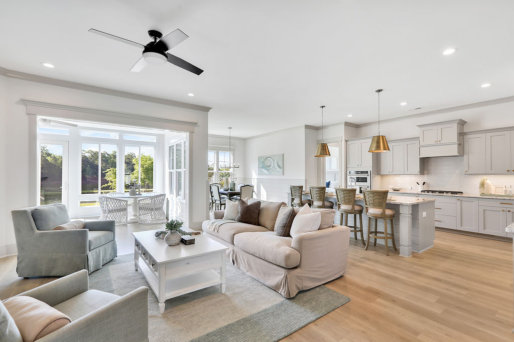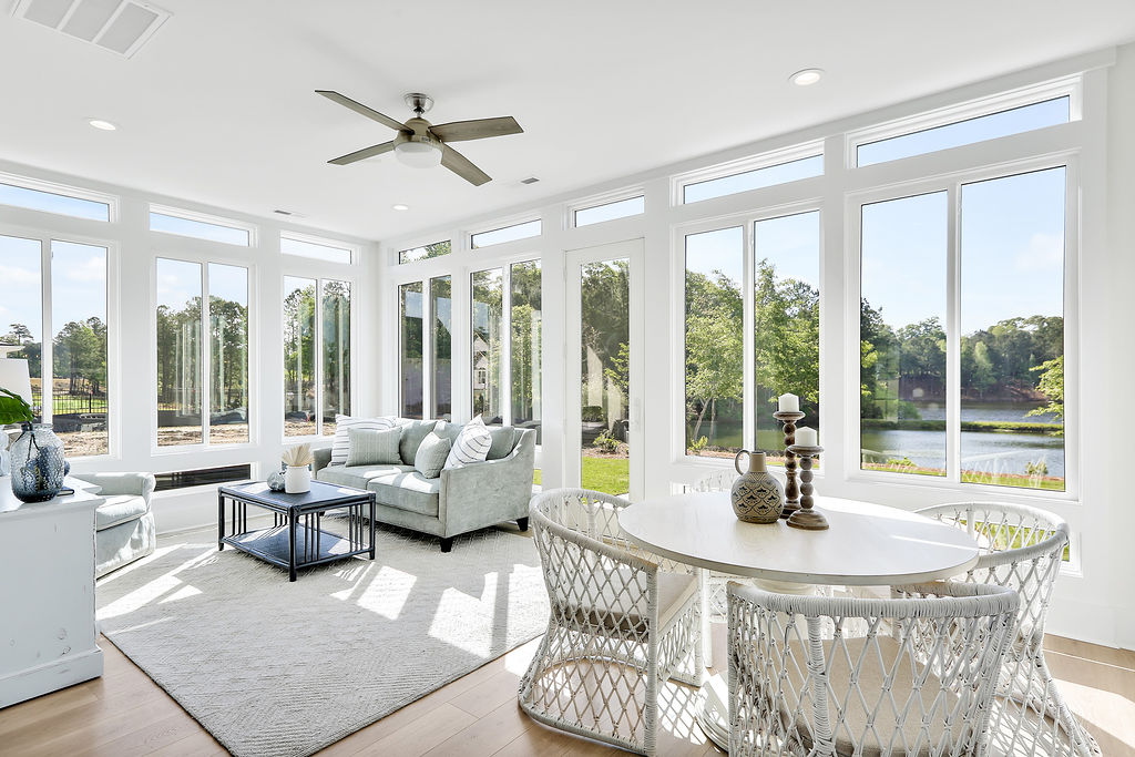 - Also, The Carolina room off the kitchen and our large, oversized islands provide plenty of space for enjoying meals. This customer-driven change enabled us to increase the size of the large, rear informal dry area so that it is now a 12-foot by12-foot dining area just off the kitchen toward the back of the home.