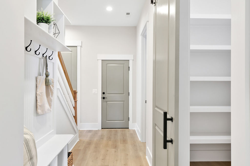 - Large walk-in pantry with motion-activated lights.