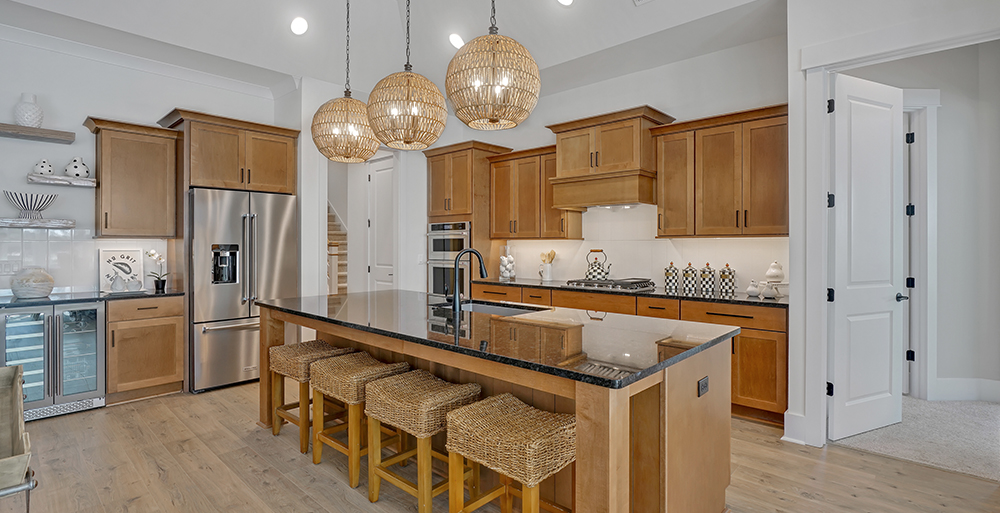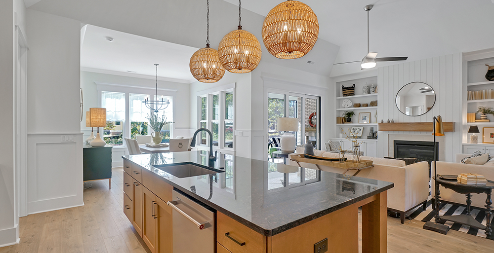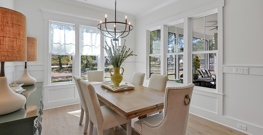 - Also, The Carolina room off the kitchen and our large, oversized islands provide plenty of space for enjoying meals. This customer-driven change enabled us to increase the size of the large, rear informal dry area so that it is now a 12-foot by12-foot dining area just off the kitchen toward the back of the home.