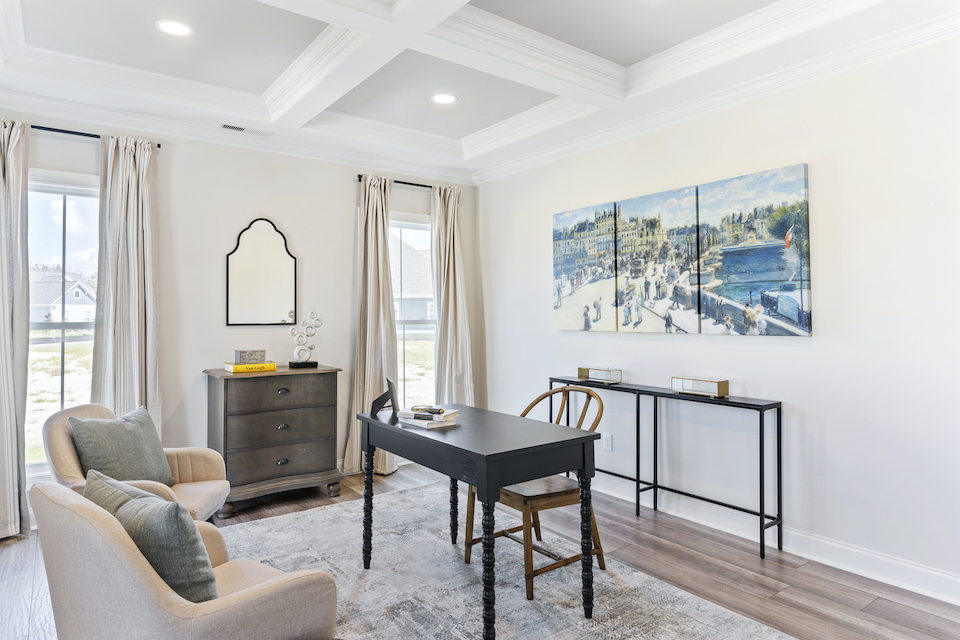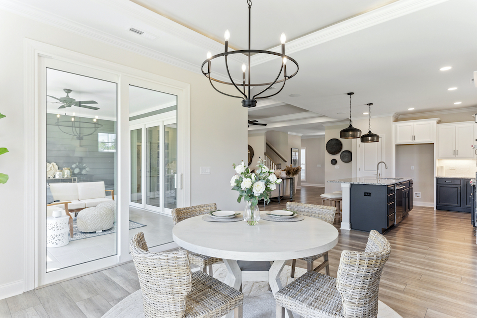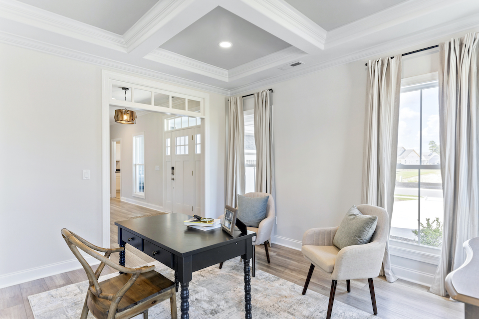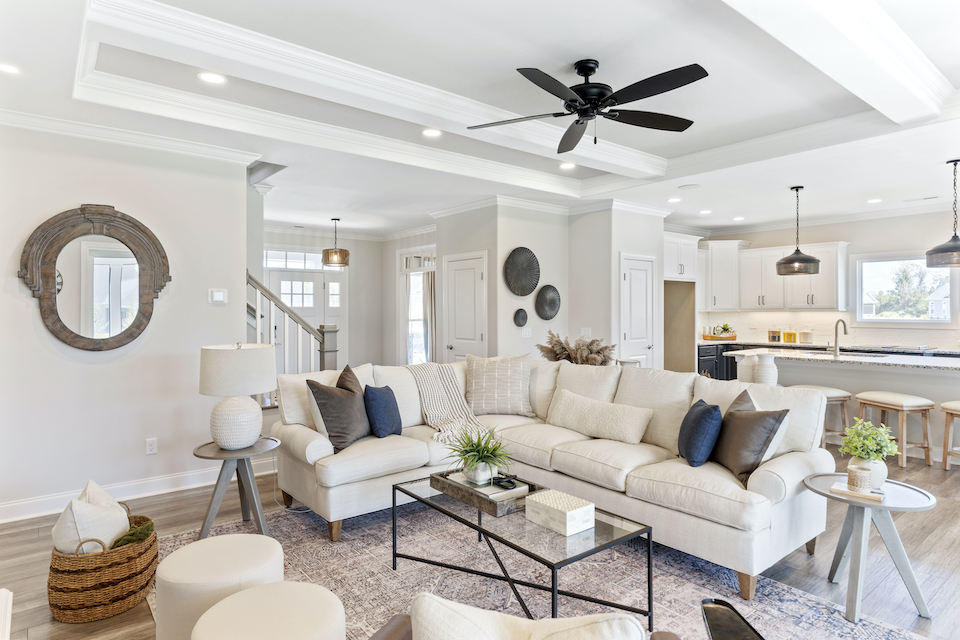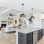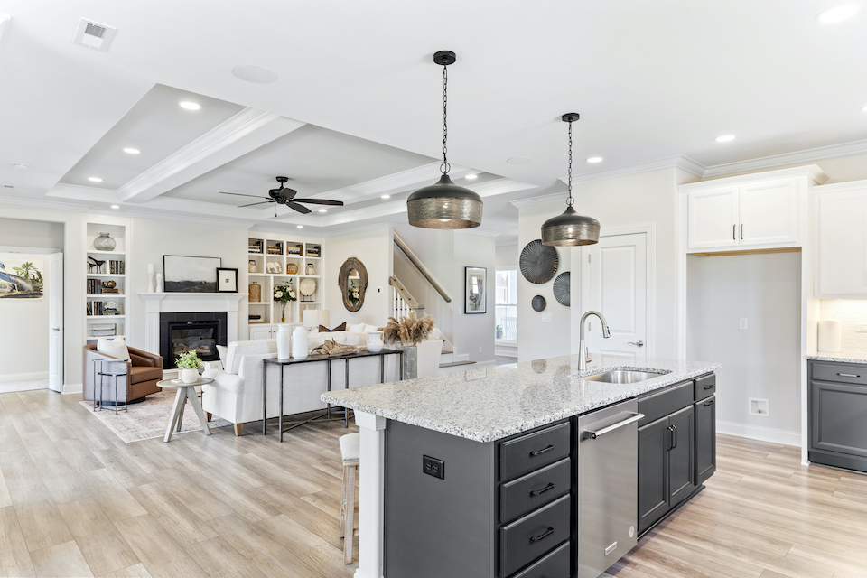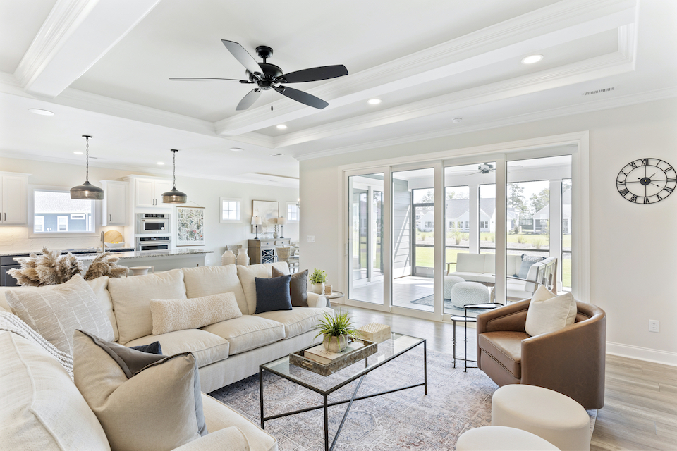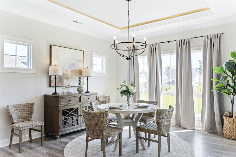 - Open concept living, family, and dining rooms featuring trey ceilings