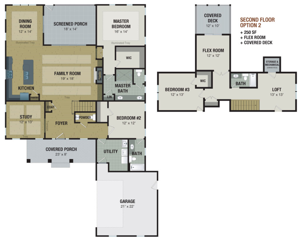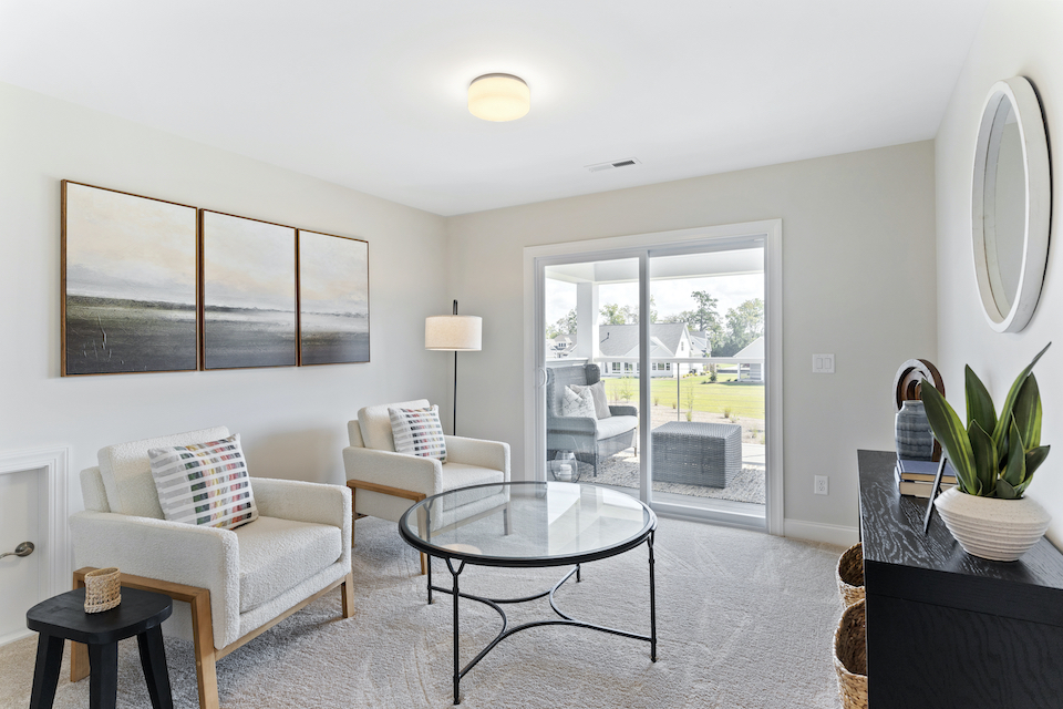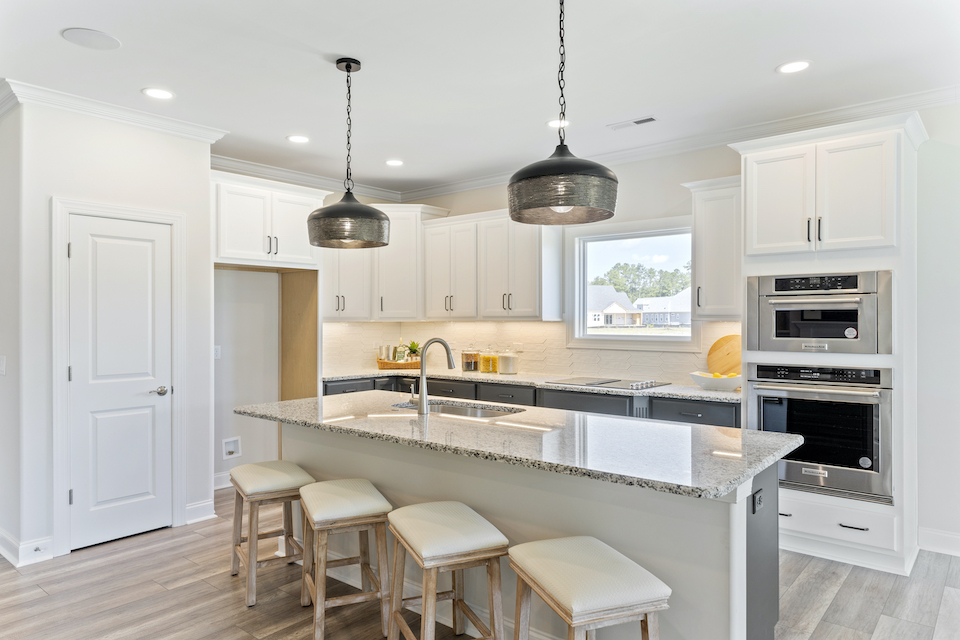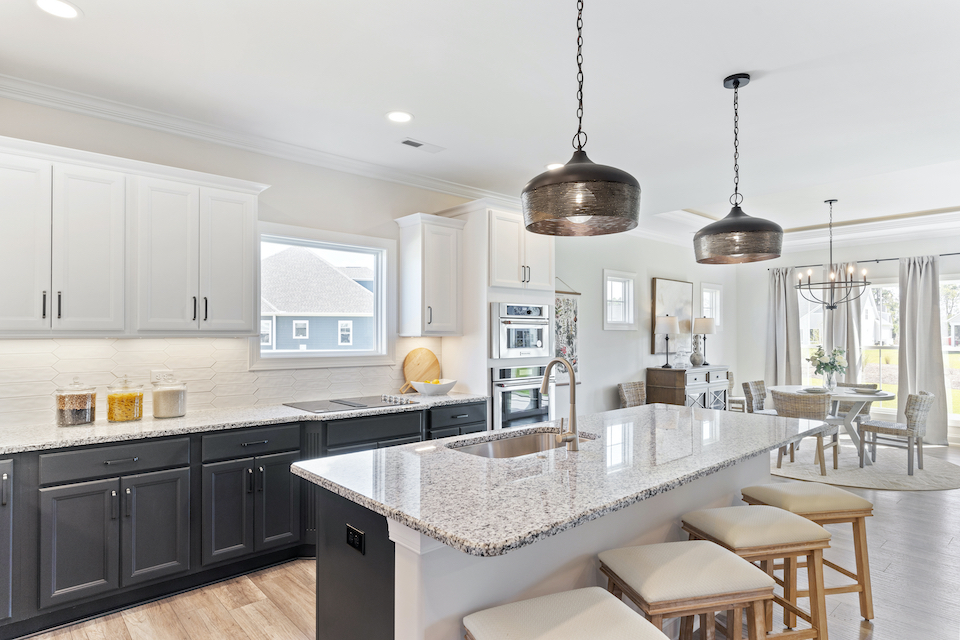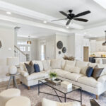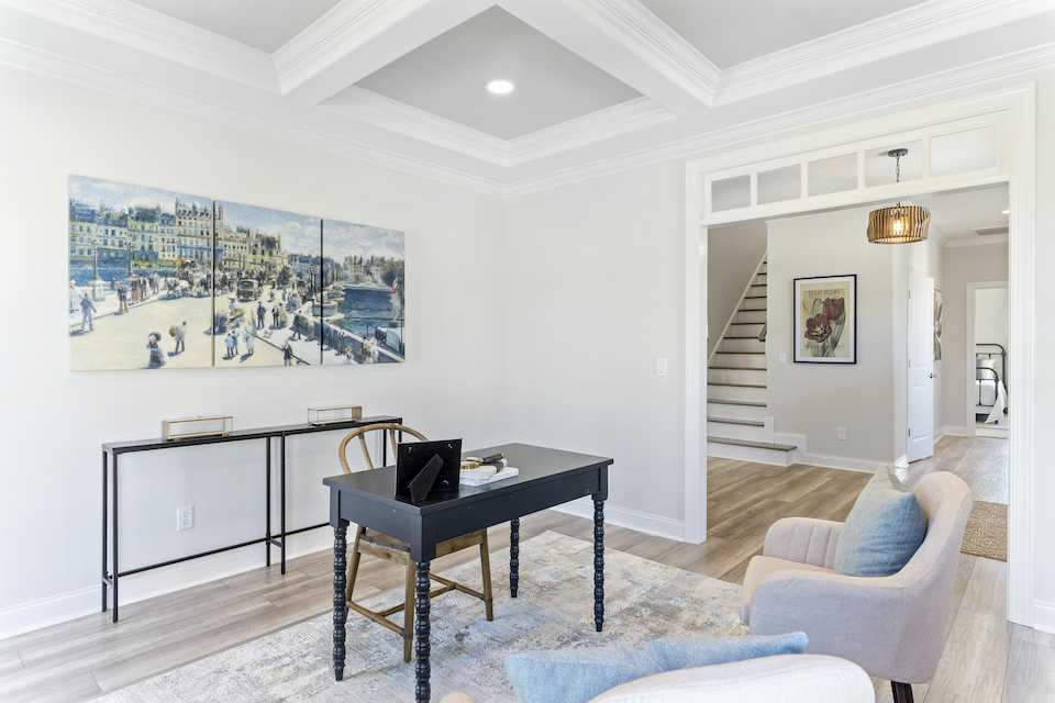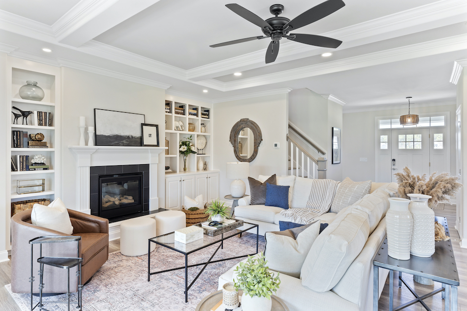 - Open concept living, family, and dining rooms featuring trey ceilings