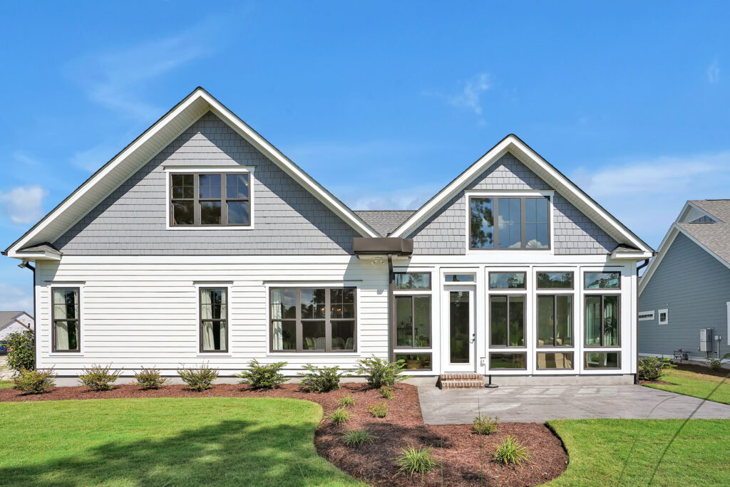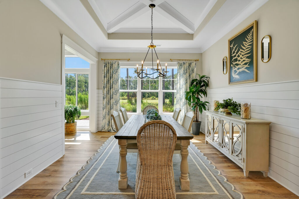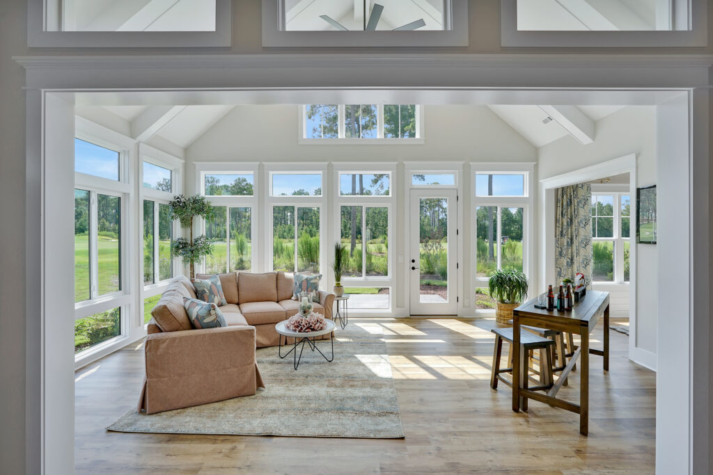 - Vaulted Sunroom Ceiling with Craftsman Beams and LVP Flooring