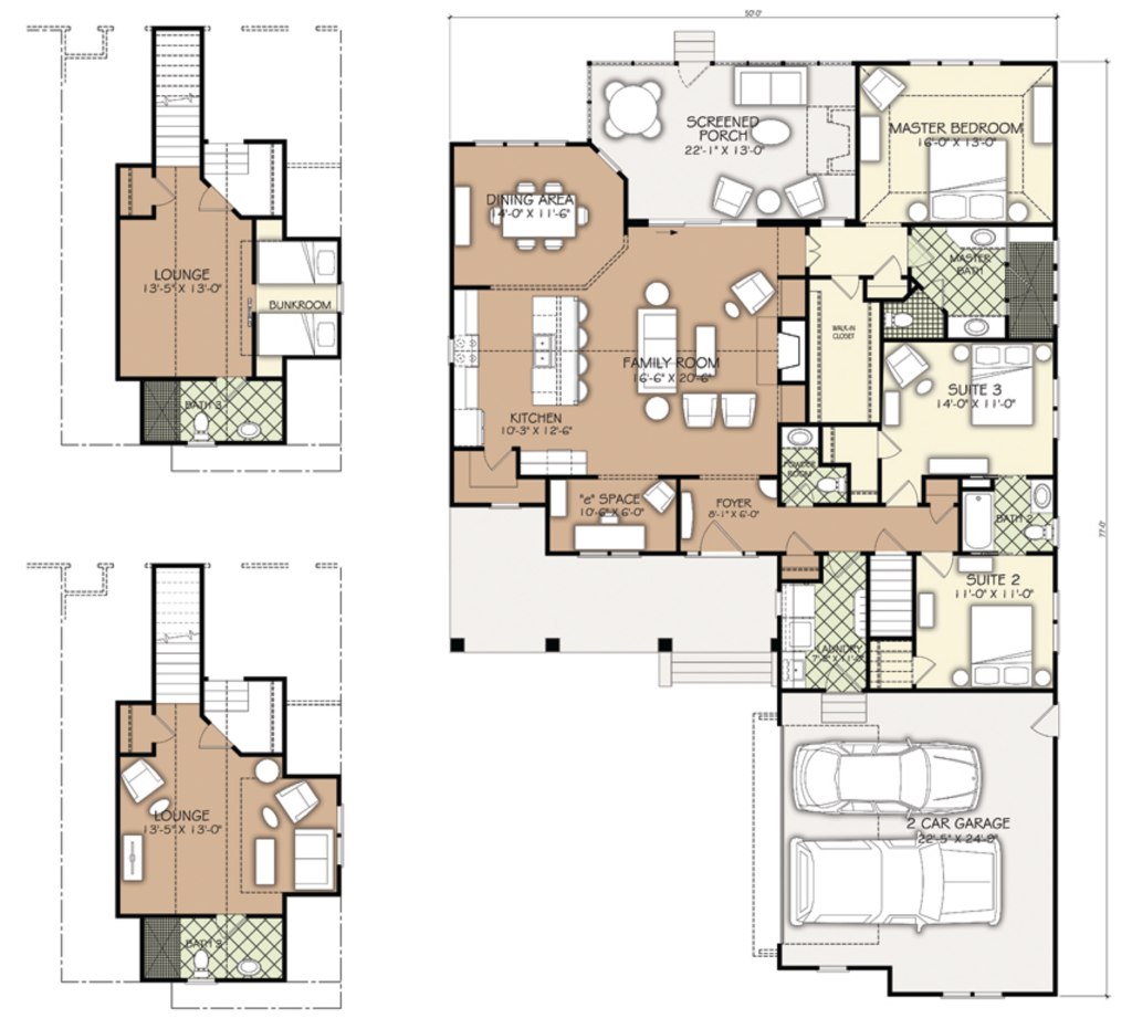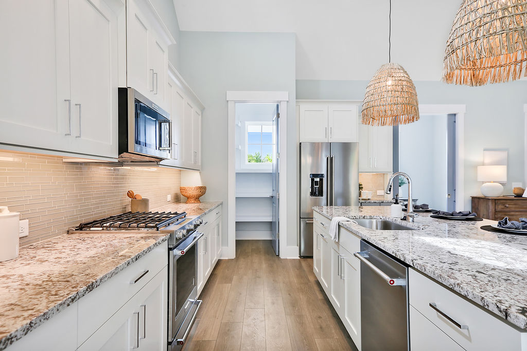 - Also, The Carolina room off the kitchen and our large, oversized islands provide plenty of space for enjoying meals. This customer-driven change enabled us to increase the size of the large, rear informal dry area so that it is now a 12-foot by12-foot dining area just off the kitchen toward the back of the home.