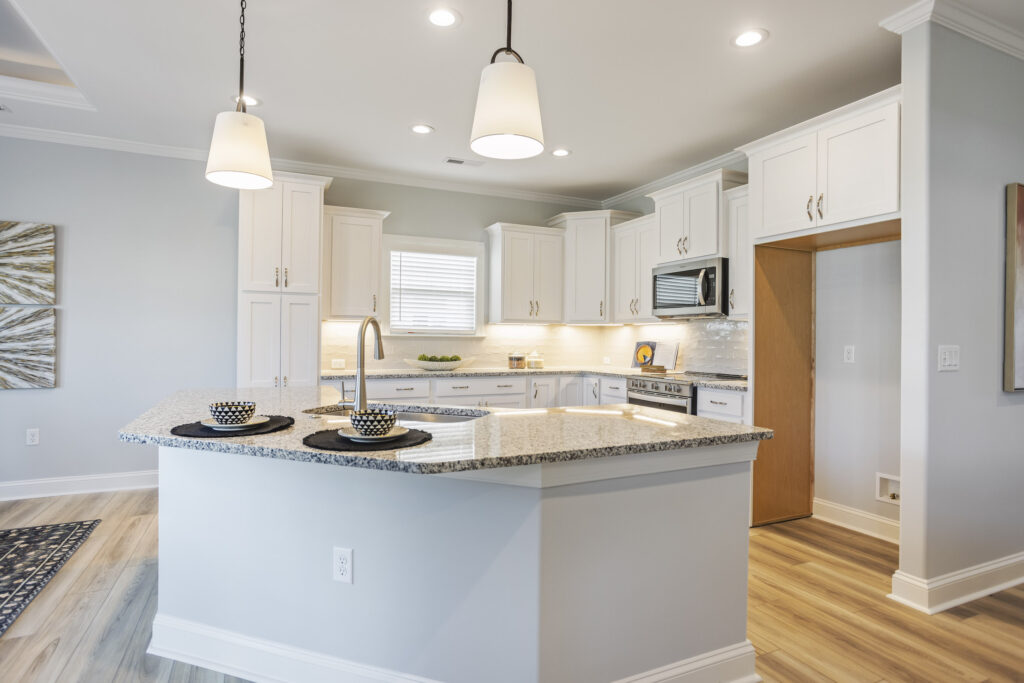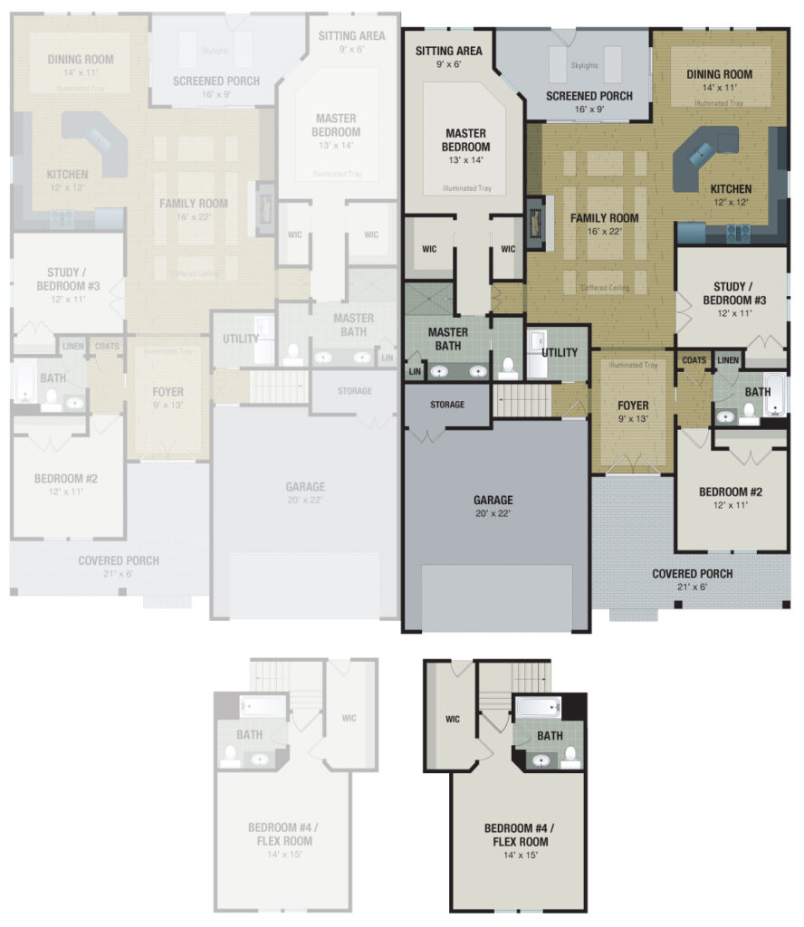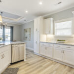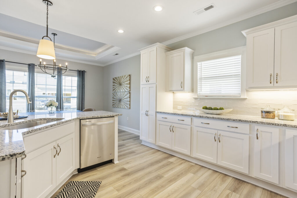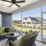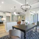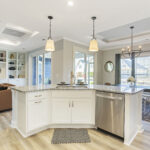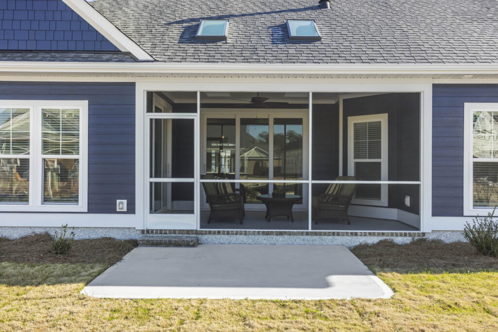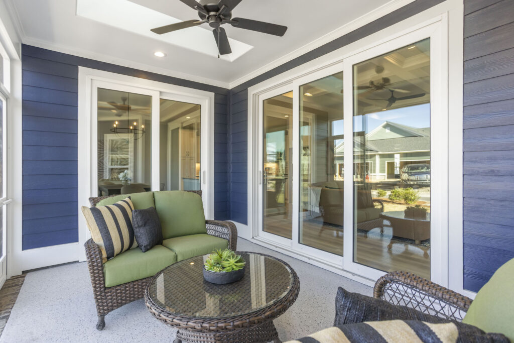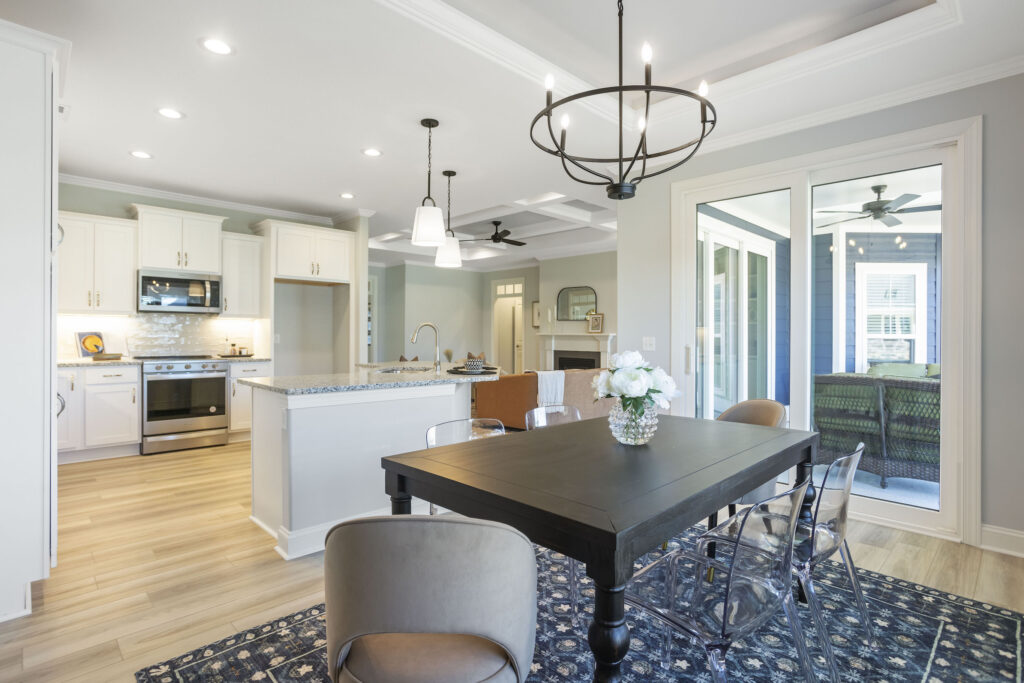 - Kitchen, dining and family room are open to a sky-lit screened porch