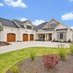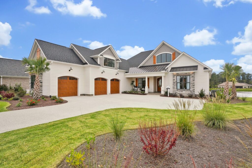 - Exceptional front elevation with stained shutters and garage doors