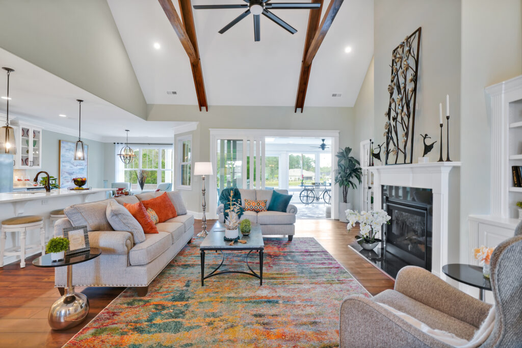 - Vaulted Family Room with Craftsman Style Exposed Beams