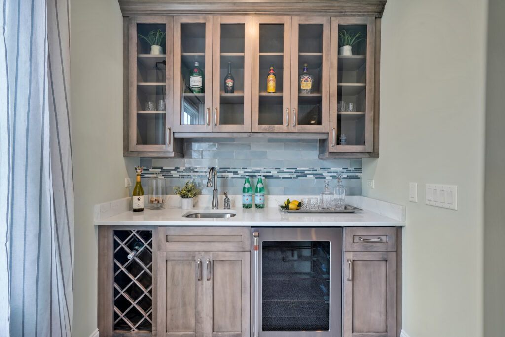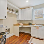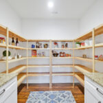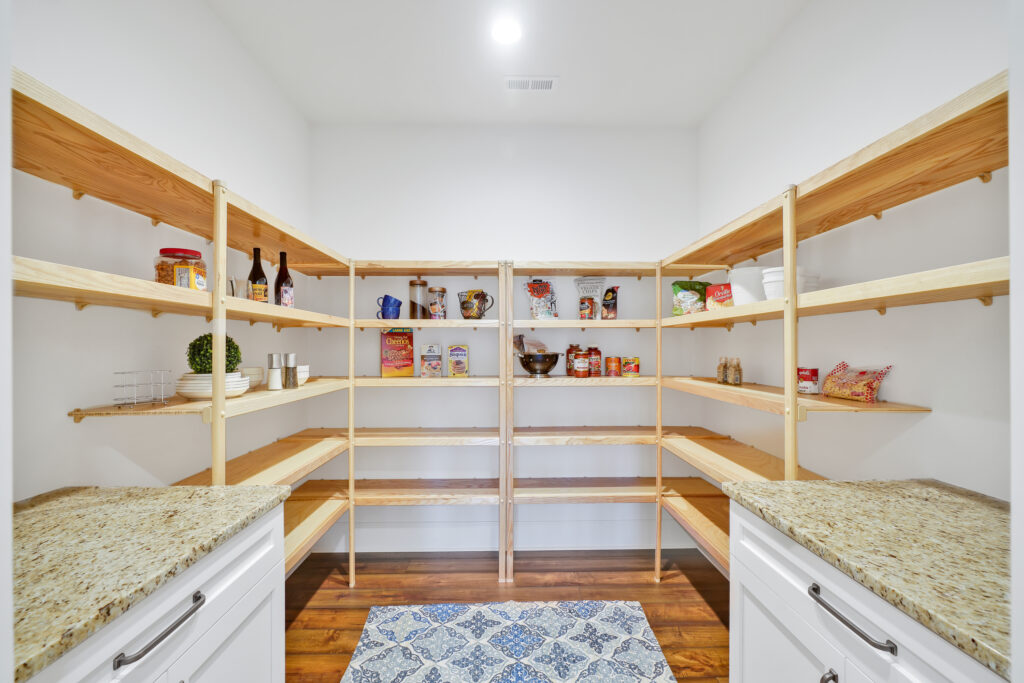 - Lighted cabinets and double cabinet doors leading in to room size hidden pantry