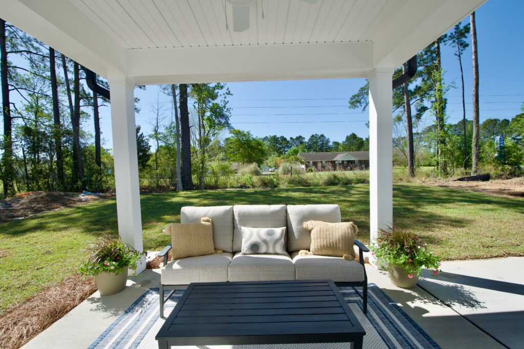 - Relaxing covered rear porch overlooks a spacious back yard.