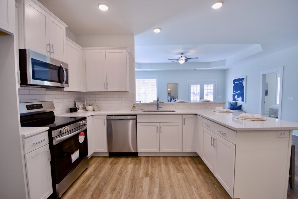 - Subway Tile Backsplash & Premium Markraft Cabinets with soft close doors & drawers.