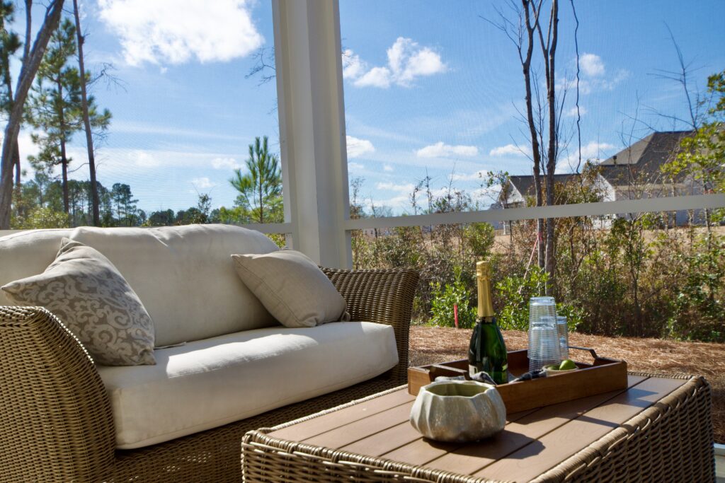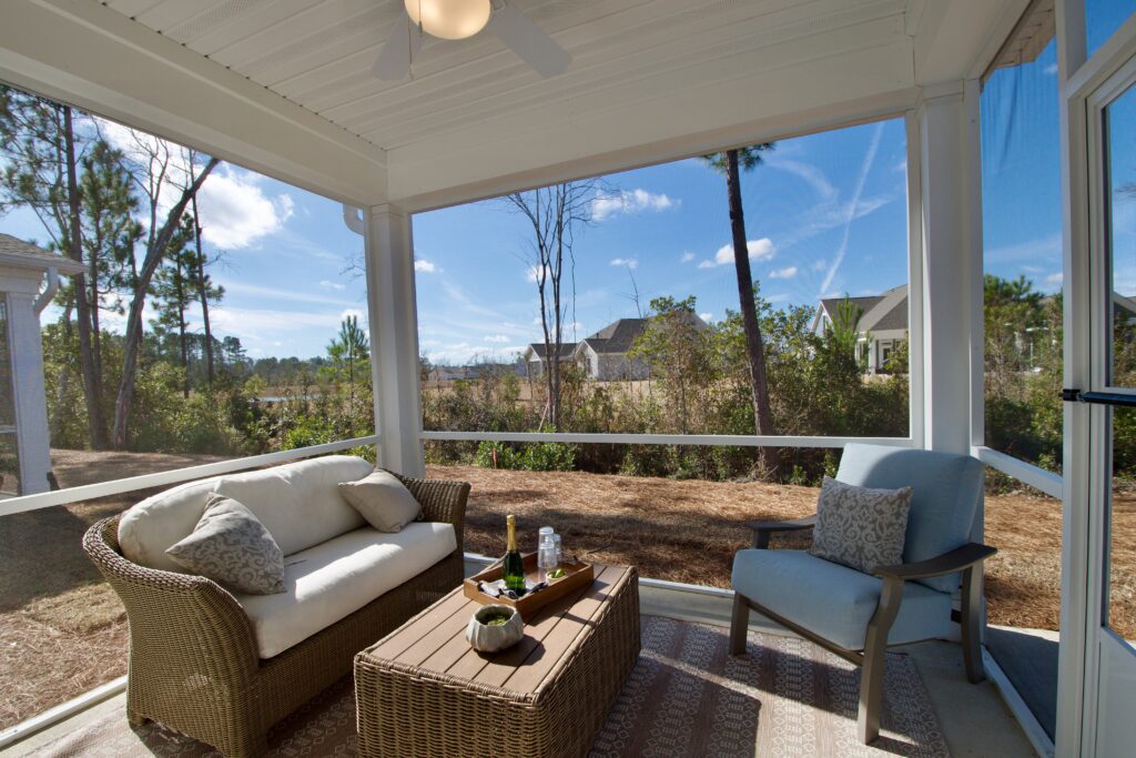 - Farmhouse style exterior with relaxing screened-in back porch.